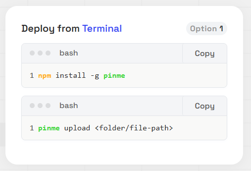 Teams, Builders, Partners, DAOs: integrate PinMe into workflows to guarantee frontend permanence.