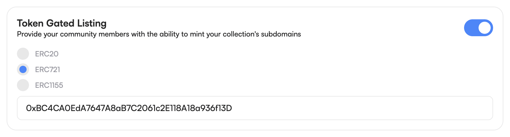 Token-gated listing allows ENS Name owners to token-gate who gets to mint the Subname based on the certain token holding.